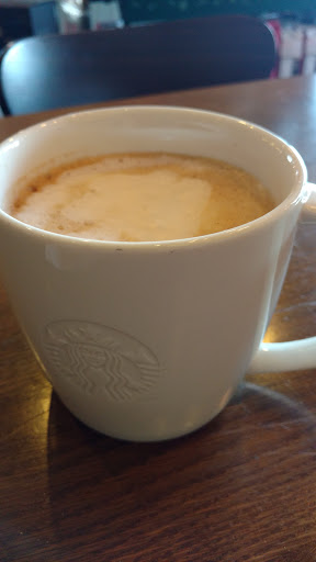 As far as Starbucks goes this location is in the middle of the road. The place could use a better music selection or keep the volume down. Today I had a Quad Shot Cappuccino with Soy, which was good. However, I also ordered the Spinach, Feta, & Egg Wrap which was just okay. The interior seating is a bit unorganized and not very friendly for the person needing to get some work done.