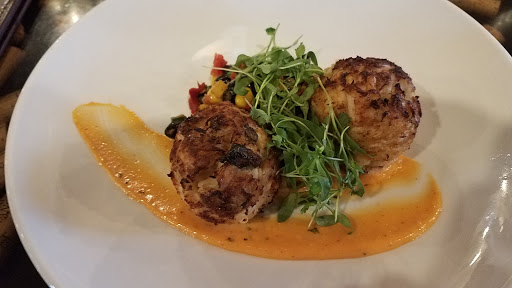 Looks = great, atmosphere = great, Music= great, 2 glasses of a basic red blend 27.00 cheese plate 17.99, 2 tiny crab cakes 17.99total = 62.99. wine was flat, or just a low quality, cheese plate low end as in when the menu compares the Spanish cheese as similar to manchego vs it is manchego... Crab cakes were very good. Wait staff great. Overall a nice place that is expensive and serves cheap items made to look like quality. Will not return as there are far too many places to explore. I choose this place because I was hoping for a decent glass of wine from a wine bar. I would expect a wine bar to actually smell the wine before it is served, or at least know the age or if it is flat. Unless of course it was just a cheap wi e served at an expensive price.