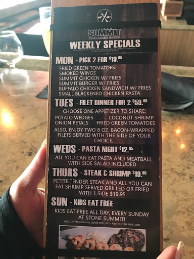 Challenging 1st Visit: Part 2 SERVICE: Our server, Nico, was very good in terms of friendliness, perhaps to a fault, as being so friendly and conversational lessened his ability to be attentive. He didnt deliver our steaks when they first came out, another server did. Perhaps if he had, they would have been correct the first time. Who can say. One observation about the service that again goes to expectations: many of the servers looked slovenly. The white shirt/dark tie uniform doesnt work if someone is wearing an oversized, wrinkled shirt thats barely tucked in. My expectation for a steak house is that the serving staff look professional. This is something staff needs to work on, along with team work. Overall, service could have been a bit tighter (dont make me ask for ice water twice) but cant say Im displeased as I felt like our server was genuinely invested in our happiness with our visit. Management went to great lengths to make us happy when the steak fiasco occurred. Pleased by the professionalism and manner in how the problem was rectified. JE NE SAIS QUOI: That indefinable something about Stone Summit has to do with where value, expense, teamwork and ambience intersect. There is a notable lack of teamwork among the servers. In a great restaurant a server is attentive to his tables but has assistance from others for water and bread delivery. This didnt occur. We had to flag down another server for bread. Watched three different people do spot inspections of wine glasses at the same empty tables and not one of them glanced our way to see if we needed anything. Without a more cooperative team spirit among staff, the issues of value and expense tilt toward the negative. I for one have no issue with the cost of menu items at Stone Summit. This isnt because Im rich, but because upscale restaurants, movie theaters, grocery stores, are all things that will eventually add to my property value living in Wentzville. Those suggesting that this restaurant should be located in Ladue or Clayton, probably havent been paying attention to all the new housing construction taking place, and what these new homes cost. My point is, Wentzville is getting bigger and richer and Stone Summit is a nice addition to the Wentzville business roster. Which takes me back to Stone Summits website, which reads "Stone Summit also features offerings aimed at the budget conscious diner—namely the “Summit Selections”, a reasonably priced protein offering with a starch and seasonal vegetable for one price." A great restaurant doesnt apologize for the cost of its menu items and certainly doesnt describe its food in such clinical terms (protein, starch, seasonal vegetable) in the context of a budget-conscious diner. Might as well call it Tightwads & Poor People Menu. Id work on a website rewrite as soon as possible. How much value does my meal have if Im not ordering from the Summit Selections? Even though the qualities of teamwork, value and expense need tweaking, the ambience of Stone Summit is exceptional. Im including photos with this review. The decor, color scheme, layout and seating options evoke a feeling of being some place special and unique. Frankly, I find this restaurant to be beautifully designed. I so wanted to write a review of glowing praise and I have hope that someday Ill be able to update this review with news of improvement. I will visit again after the official Grand Opening. I have a lot of hope for this restaurant based on my interaction with management. A few more tweaks with training and expectation setting, and I believe folks in Clayton and Ladue will be envious of Wentzvilles newest steak house.