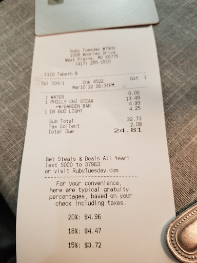 Thankful for our West Plains Ruby Tuesdays! Good food and always enjoy the salad bar!