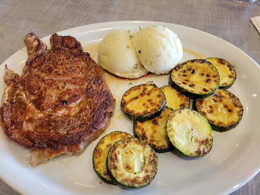 Bourbon Pork chop was delicious. Good was great. Service POOR. Waitress forgot our drinks. She also picked up my plate before I finished my food. I had just taken a bite and she picks the plate up and says your done right and walks off!!