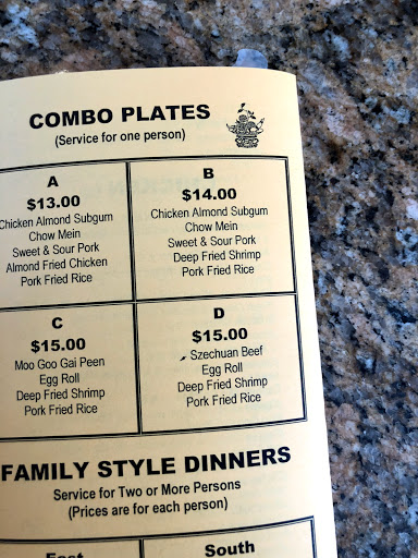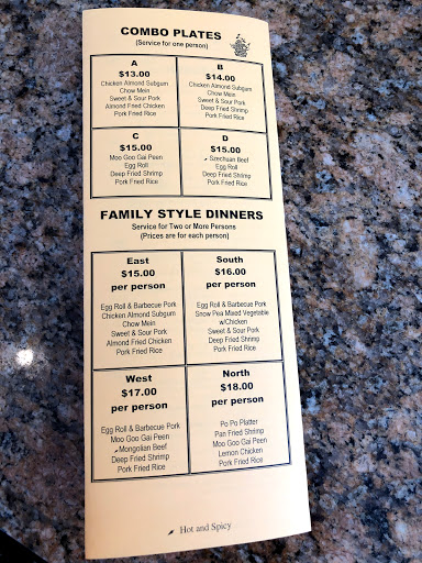 Started at a 5 star review. My first visit was great. Good service. Good food. Im knocking off a star for the second visit, as we ordered take-out and mistakes happen, the order was not complete, and when I went back to get the rest (which I wouldnt have held against them) the order just wasnt right. Good food, so we had it anyway. Not worth complaining about honestly. Third visit was the most disappointing. Take out again (as I live just down the street) and ordered the Kung Pao Chicken and Chicken Fried Rice. Chicken Fried rice was excellent. Kung Pao Chicken was down right wrong. It was more a vegetable stir fry with, after going through the whole box, I counted 2 pieces of chicken. Needless to say, I was let down and lost my appetite for what I really wanted. I guess for a veggie stir fry it was good, but thats not what I ordered. Final thought: It wasnt any one bad incident, it was a culmination of repeated mistakes, long hold times on the phone, and inconsistency. My advice is this: Go with the General Tso Chicken and Chicken Fried Rice. Eat at the location.