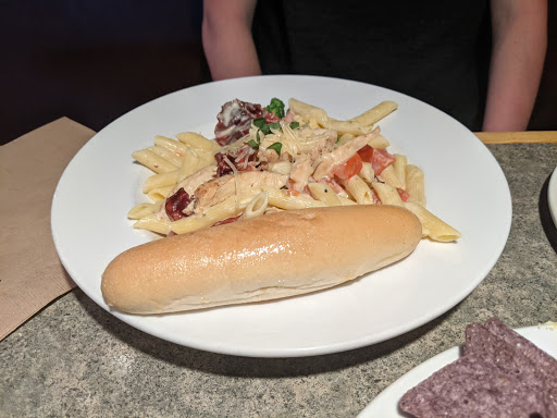 We had a decent experience at this restaurant. We went with another couple and it was all of our first times here. The pizza was good and they had some interesting choices plus a couple of classics. I had the clubhouse which was quite good. My husband and my brother shared one with multiple meats as well as the Thai pizza. My brothers fiance tried an alfredo pasta selection, but it was pretty unexciting. We were there towards the end of the night and our service was still quite good, despite the waiter likely wanting us to get out.The beer selection was pretty unexciting, but had some good classics on it. Overall, this was a good place for interesting pizza!