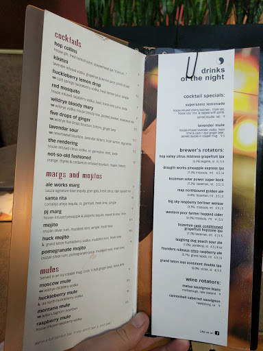 A great experience across the board. For the price this is the best kitchen in Bozeman and they have the best beer selection to boot. They typically have 2 beers on nitro and 1 on cask but unfortunately the cask beer seems to always be an IPA. Id really like a brown or a porter on cask but they sell their IPAs so business wise I guess it makes sense. Great steaks, burgers, fish, salads, deserts, apps. Happy hour is good. Reservations only for the separate white table cloth room. Otherwise expect to play the waiting game or hunt for bar seats.