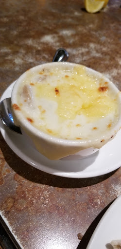 I gave them 3 stars because the service was excellent. Our server was friendly and helpful, and when they had run out of baked potatoes, they apologized and offered us either free drinks or free desserts. So top marks for the service. However, the food was not at the same level. We had French onion soup (the best thing we had, but too salty), a bison burger (ordered medium, but it was burned on the outside and overcooked on the inside, very dry - gotta be careful with bison), and bay shrimp fresca pasta (not bad, but not that great. It needed some more flavor and less salt). For dessert, we had a cheesecake (Sara Lee quality) and creme brule (not bad, but kind of plain). So atmosphere and service were great, food not so much.