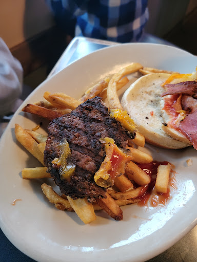 We went here about 5 years ago and were extremely disappointed. We thought maybe something had changed so tried again. Thats it, not going back. The only reason I gave it 2 stars instead of 1 was because my husband liked his sandwich. The table was sticky, the chairs needed to be wiped off, the floor around our table was filthy (obviously had been a child at our table before us). Our waitress was one of those squeaky, sing-song ones that wanted to know how "we" were today and had "we" decided what to order, and had "we" saved room for dessert. Ick. I ordered the Blackened Prime Rib Sandwich and a dinner salad, which I requested come ahead of my sandwich because Im a slow eater. My salad, which was nothing more than a plate of lettuce with a few sunflower seeds sprinkled on top, came AFTER my sandwich. There was so much fat and gristle on my meat that I think I got about half a piece of meat. I expected the prime rib to be shaved or sliced but it was just one slab of meat, as I said more throwaway than meal. Not sure which part of it classified as "blackened" -- it was very bland. AND, it was expensive. Never going back here. Done, done and DONE.