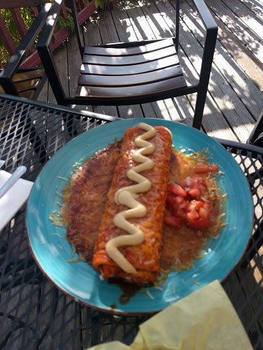 Eating a smothered burrito on the deck makes for a pleasant lunch.