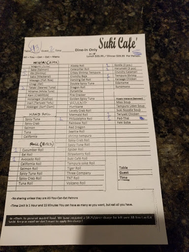 I enjoy Suki and have eaten there at least a dozen times so far. The service can be slow on busier nights yet I have never had a problem on a standard or slow night. Really, I have never had an actual problem with the service. I have heard from friends that the service is not the greatest so this is just my person opinion. The sushi is prepared properly and with pride which is what draws me to this restaurant.