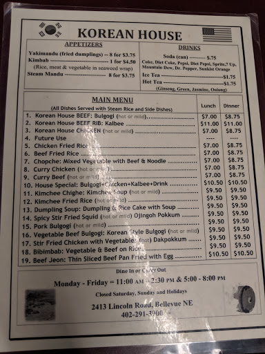 I have tried multiple so call "korean food" in town. And I have to say. Korean house have got to be the best of the best korean food I have ever had since I moved here I felt the warm and fuzzy the moment I stepped into the restaurant. Ordered bibimbop and kalbi (rib) its amazing. Hands down.