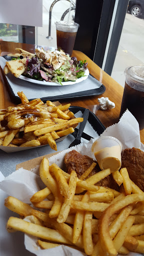 It was a little hard to find from the street, it seemed purposefully hidden in plain site. This is not a be seated and a server will assist you type of place. Walking in youll approach the counter and order from the hanging menu. I would suggest you review the menu before stepping in line, people are going in and out very quickly. All of the food was great, fresh, and definitely home made recipes. The menu has good variety all while sticking to a home grown theme. If youre from the south like I am, the fried chicken will be a bit different (but still good). It was battered with bread crumbs rather than the usual egg wash and flour. The Gangsta Fries were unique and very tasty. They have a very small area for seating, I would consider this a quick hang out with a small group of friends, casual date, or a place to grab a bite by yourself.