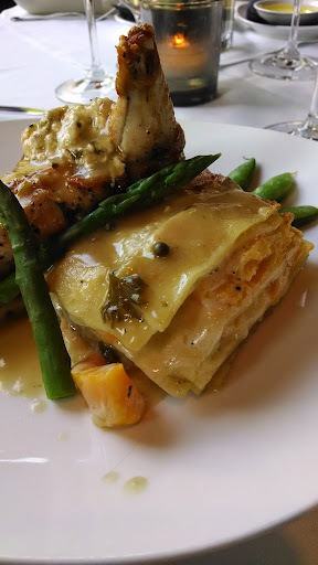 The service was absolutely awful, and it diminished the fact that the food was actually pretty good. We were seated at a table with a visibly/chunky dirty napkin on the seat. Our waiter took 10+ minutes to take a drink order, and then he took another 20+ minutes to come back to order our food. When he first came over, he asked us if we were there because we heard they had "kind of good food"; for $40-$50 a plate, Id hope the food was better than "kind of good". He kept talking about how every entree came with a house salad, but we never received these salads. We had 5 different people deliver our food and clear plates, which is probably why no one knew we didnt get our salads. It wasnt pleasant to see every table around us get them, but there wasnt anyone who came by to ask us how we were doing either. The waiter did not come to check on us for either the appetizer course or the dinner course. There was a guy walking around selling roses, who interrupted our conversation; it felt very uncomfortable to be sold something during dinner. We had a gift card to use, and the waiter really rudely asked "how are you planning to leave the tip," which seemed inappropriate and abrasive; we were obviously planning on tipping him despite the fact that he took horrible care of us, and we left his tip in cash. I got the pork chop, which was good, but the potatoes with it were so salty they were hard to eat. Were disappointed our experience deviated so much from the wonderful reviews this restaurant gets.