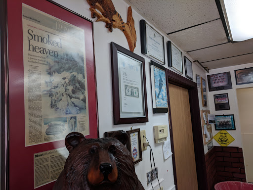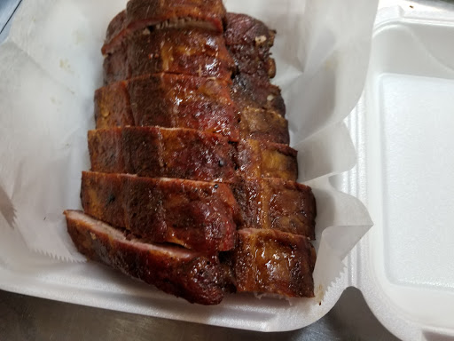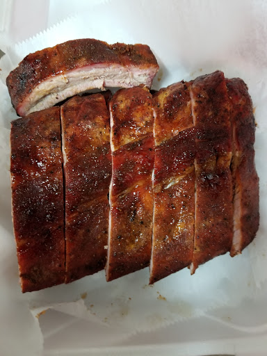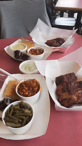 Big fat Smokey ribs served downhome style with classic picnic sides & juicy BBQ sauces. About the visit: Located off the East end of Benson & the North side of Radial...right next to a park. The building is set-back & looks historical, matching old Benson. Inside was clean & had more room to eat than expected. The Deco was cute & campy like if you dropped in to get BBQ on a fishing trip up North. We were there before & thru dinner rush on hump day. The take-out in this place is enormous. That being said I was happy we came early...because everyone stands in line & orders up front & its all "Buisness". The staff are nice but clearly it helps to grab a menu ahead of ordering & know what you are going to order (for your sake & theirs). We shared a Full Slab Rib Dinner that comes with 2 sides, cornbread & chips for 50cnts xtra. Also we ordered 2 more sides & fountain drinks. They also have bottles. The (Baby back) pork ribs were very thick (like beef), dry & Smokey with a crisp exterior & very chewy to the bone. It works well because you can have as much BBQ sauce (serve yourself) as you want. All were Very Good! I preferred the mild (thick & bold) with the sweet (light with honey). The green beans were like Del Monte...but I liked them. The baked beans were really delightful with baked apples & a lighter sauce which tasted really fresh. A drunken bean Id say. My spouse said the potato salad was OK but the coleslaw was fantastic with mustard & celery seed. The chips are fun salty bites between eating everything. Ribs & sides were served Hot which we appreciate! The cakey warm cornbread is wonderful...but comes individually in baggies & is tiny. We ordered more, but it was forgotten & didnt want to hold them up. When we saw how it was served we got the impression they dont make enough because let me tell you...It was tasty. Also they give you packets of 100% honey...that is a bonus! Overall...we will come back to try sandwiches. Those looked great too. These ribs you have to try. They are "Campfire" tasting Smokey ribs...lots of meat. Dry. But can be loaded with very tasty sauces!!! A crowd pleaser Obviously.