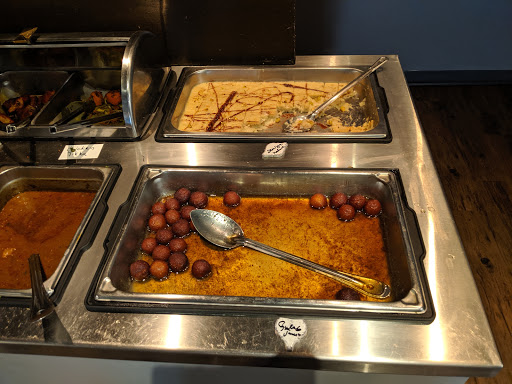 We were here in a large group (family) and despite having told the restaurant that we were arriving, they had much difficulty accommodating our seating arrangement. Essentially I had to squeeze in some corner so that everyone could fit. They have the tables to make room for large groups but they really dont have the structure for it. Our table was at the end of the day, unreserved and we had to pull tables together to seat ourselves. The size of the restaurant is small so its possible that causes some chaos when large groups arrive. We were here for the lunch buffet. The buffet had plenty of options for vegetarians and non-vegetarians and great dessert options. The food was fairly good. South Indian food however was not good. I would stick to the North Indian dishes. The idlis were dry and the sambar was watery. The service was decent, but certainly could have been better. I think if we were to come for dinner we would have better food and service. I would definitely come here again, if we were in town, and give them another chance.