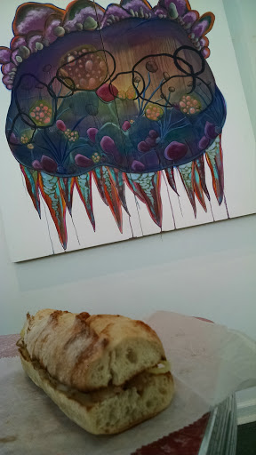 Amazing sandwich and love the art gallery feel inside.