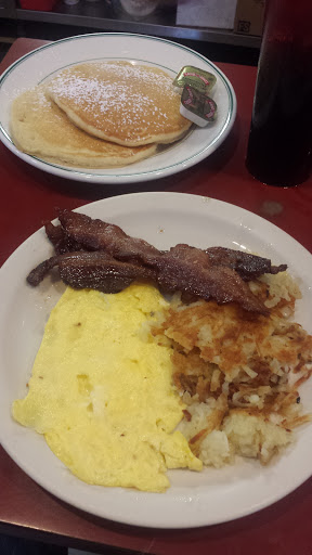 Breakfast is normally good. My toast had so much butter on it when I took a bite the butter was rolling down my mouth..they must have cooled my eggs first by the time I got to my car my eggs was not hot..The cook was behind the line cooking and eating his breakfast!? Im in the catering buisness and some things you just cant do.Management should get them a serve safe class mite help.. The server was a very nice lady.she was attentive to all the guest there and also the young man was very nice as well...p.s when the server told him it was a to go he seemed pissed put food in box and tossed it on the counter.. Thanks #stillhungry #12.00wasted