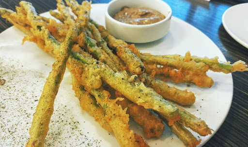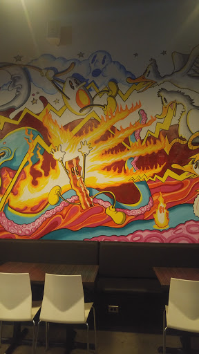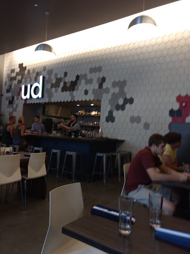A gorgeous dinner at the Ugly Duck last night. The Asparagus Tempura (middle) was an unbelievable surprise - crunchy and refreshing. The Spicy Pork ramen (top) was delicious, but the pickled veggies were a bit overwhelming on the palate. The Chicken Miso ramen (bottom) had an unusually fatty broth, and didnt contain any of the refreshingly light, malty flavors typically associated with a miso. The establishment is in the heart of Midtown Crossing, next to Marcus theater. It has the edgy, trendy interior you will find atypically associated with the area. The most striking feature is a mural with a blazing battle of wills against a squad of ducks, a bowl of fire-breathing ramen and an octopus. Unfortunately, outside of a Duck Fried Rice, there are no other menu items featuring the poultry. Given the restaurants namesake, that was a disappointment. Octopus is not on the menu but the menu contains many pork entrees for those who like the taste. While every piece of literature and the wait staff will call the dishes Japanese-American, the menu screams Pan-Asian-American, with Thai, Korean and Japanese fusions. Overall, its an experience per bite, so we plan to go there again! Note: The chef was eager to learn of our experience and tracked us down even after we slipped out the door. When we told him about the unexpected Miso, he explained he uses a fatty, protein-rich blend with chicken stock, which may account for the odd taste. I could also do without the Eminem soundtracks preaching to the wind, which encourages a more take-out experience.