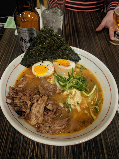 To put it simply, the food was great, the service was just awful. We came in around 6pm on a Saturday night and were able to get a large table right away for our group of eight people. The girl that sat us passed out food and drink menus and filled everyones water glass, but she was not our server and did not give us any indication of who would be our server; she actually barely even said anything at all. We sat there for about TEN minutes while a group of staff huddled in the corner, apparently discussing who was actually going to be our server. Eventually, a girl came over and basically said "I guess Im going to be taking care of you all this evening." Since we had so much time to look over the menus before being served, we had all decided on what we wanted, but she did talk about the menu at all or offer suggestions; she was just an order taker. They had a good selection of unique beers, including some imported from Japan. I tried a pilsner because the menu suggested it as a pairing with my entree. Later I had a Japanese brown ale that was also very good. Only one person in our party ordered an appetizer, it was a fried pork fritters that we passed around the table, and it was extraordinarily good, I definitely wanted more of them! While we were waiting for our entrees to arrive, a staff member came and dropped two brussel sprout salads on the table. None of us ordered these, but someone in our group said that some of our entrees must have come with the salads and so we shrugged it off. I ate a brussel sprout out of one of the salads with my chopsticks, and someone else in our group ate a piece of the other salad. However, moments later, the same staff member came back and said she dropped the salads off at the wrong table and they werent for us! We told her that we both had eaten pieces from the bowl, but she took them up and DROPPED THEM OFF AT THE NEXT TABLE ANYWAYS!!! GROSS! For what its worth, the presentation of the salad was very nice, and the piece that I had was very tasty. I would get it again if I ever go back. Eventually our entrees arrived. It was a bit of a wait but not too bad for a Saturday night and for a group of eight people. I got the super spicy pork ramen bowl and boy it was a good kind of spicy. The soft egg in the bowl was delicious, and the pork melted in my mouth. I was sad that there were only four pieces of pork in the whole dish, but the rest of the bowl was still very tasty. The pilsner I ordered went very well with the spiciness, so good job for recommending that pairing. What really killed the experience for us, is that when it came time to pay, the poor girl took FOREVER to get our checks to us, and when she did, they were incorrect. She asked us at least two different times how we wanted everything split up, but still took three trips to the table to get everything arranged correctly. Someone in our party had ordered a soda but he never got it, but at least that wasnt on his bill. A basic seat numbering system would make splitting checks much easier! All in all, the food is the shining star of this restaurant. There were egregious shortcomings in basic restaurant customer service that was very frustrating. I feel like they could have used at least one more staff member, or a manager on the floor to help fill the gaps (run food, pre-bus tables, table touches with guests, help out behind the bar). I want to go back, but if I do, it will be with a small group. Address these glaring service issues and this place could be great!