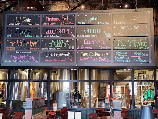 Our server wasnt very keen on what was going on. 3 out of 4 of us ordered a flight. 2 of us ordered flight of 4. That was fine. One of us ordered the 12 flight. She wasnt told they were out of 3 of the beers so she was only brought 9. She asked to comp the price to $9 instead of $12. Our server didnt even respond to that. We werent super impressed with any of the beers except the wheat one and were and craft brew kind of crew. One of the orders was wrong, but that was fixed within in a few minutes. The burgers were sub-par. The buns arent toasted or anything, just a plain white bun. There wasnt a lot of flavor in the burgers themselves either. The fries were average, better than the burger at least. 2 people got pasta and they said it was about average. It wasnt really worth the price, in my opinion. I expected a little better quality. The atmosphere was spot on though. Very cool looking. We made our reservation and got seated exactly on time on a Saturday night. When we got our bill, the flight of 12 wasnt comped so we flagged a guy down and said that was no problem but did the math wrong and still overcharged. We wont be going back and wouldnt recommend it.