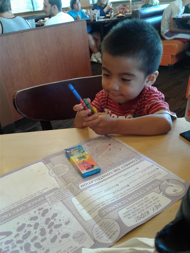 Slow service. our waitress was very slow. So we asked the manager of she could grab our drinks, its been about 10 minutes. She said shes serving other ppl, food comes before drinks here. I said, well, shes been taking orders and or standing around not serving food. Wed like our coffee and would love to order our food. Took a long while for the food to be served. Manager was rude, but a little helpful. Our server was very friendly, just slow.