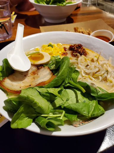 Giant bowls of Ramen Noodle comfort food. You can add or subtract ingredients. Bites are average compared with others in Omaha of the same kind. Jumbo Ozaki (matcha green tea lemonade) when available is really good! It is pricey...but all Flagship Commons food is. The cheap mall food is offered outside the Commons inside the actual mall aisles. Perfect to eat before a movie next door as they serve quickly. I am a stickler on HOT food & having chopsticks...they have both!