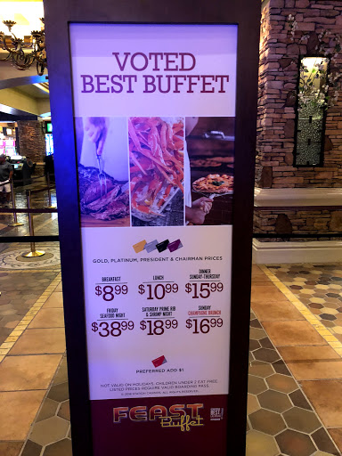 Great variety of food and value. The chefs at the Dynasty grill area where you pick out the veggies and food you want and they stir fry it in front of you are great. You can add a variety of meats or no meat and it is the best make your own stir fry in Vegas. No other casino buffet compares to the quality of this one; even the ones on the Strip that are much more expensive are not as good as this one.