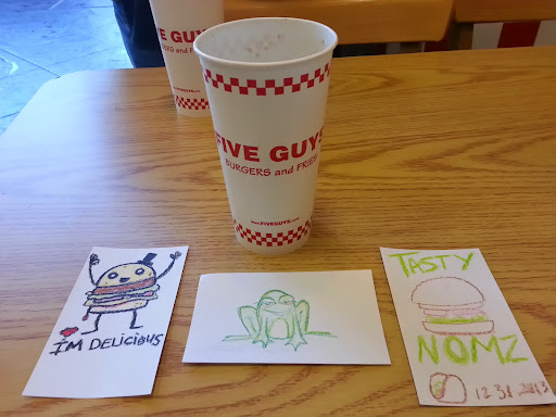 Five guys never dissaponints, when you feel like a great burger and frys its a great place. I am addicted to the seasoned frys.