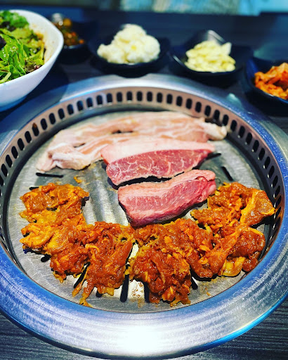 OMG we love this place more than I can even begin to express. My husband and I have been eating here at least once a week every week since we first discovered it shortly after it opened last year. We have been on a variety of days and times but our favorite is Sunday at 11 just after they open. You get all of the great dinner menu items because its Sunday but you dont spend an hour waiting for a table like you will at dinner time. BTW that hour wait, thats for dinner on a weeknight. Dinner on a weekend can be even longer but that should tell you just how good this place is because people DO wait (myself included) over an hour for a table here. ANYWHERE else in town if the wait is more than 20 minutes Im out the door looking for somewhere else to eat but here ... Im gonna wait as long as I need to. You cant make reservations here but they will text you when your table is almost ready so what I would recommend for dinner service is come in, give them your name and phone #, and then go browse the mall until they text you. Please note that the bar is not open seating and its not a cocktail lounge where you wait for a table. You can go up to the bar to order drinks for while youre waiting but if you sit down at the bar youre basically jumping the line of people that are ahead of you waiting for a table. I still highly recommend going early for lunch though. Same food, little to no wait. So onto the food. Yes, its awesome. People dont wait an hour or more to get a table at a place with bad food, right? That goes without saying so I honestly am not going to spend much time on the food. Everything is all you can eat, you order your sides/appetizers/drinks which come prepared and ready to eat and then you order your meats which come raw. The table has a grill in the center and everyone gets a set of tongs so you can cook your own meats. If you want it theyll bring oil for the grill but we prefer to order the pork belly (#17) and use the pork fat to grease up the grill before cooking everything else. YUM. Everything is good. Seriously, everything. So whats the real reason we come here every single Sunday like clockwork? ITS THE STAFF! Every single server we have ever had, every bartender, every busser, every head server, and Enoc the general manager are some of the coolest, warmest, friendliest people youll find! After just our first visit we had developed a friendship with three separate staff members including Richard (our favorite and someone that we now consider a good friend). On our second visit people recognized us and welcomed us back. Kaylin doesnt even need to ask our order anymore, she has it memorized. Blake will make you watermelon soju (not on the menu) if you ask him to. Eugene has an awesome sense of humor and his roommate Kevin is hilarious, Ozzy is Mr. Friendly, JJ runs the bar like a goddess, Mingju has the best hair, Tori is super sweet, Jessica is very attentive and will check on you the most often during a meal, and literally everyone weve encountered here is really something special. This place has the very best service in town. (sorry if I spelled anyones name wrong or forgot to mention anyone by name, we <3 you all!) It might sound like were friends with the owner or something and thats why were writing this five star review but the reality is - we never knew anyone associated with this place until we started eating here but its like the Korean version of Cheers. Everyone is friendly and if you strike up a conversation with them while youre there they will remember you the next time!