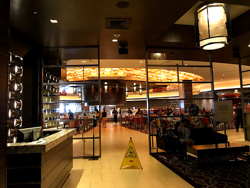 I always forget, but some staggering % of crab legs and shrimp come to Vegas with a majority of that coming to the buffets all across town. My friends seem to like this buffet, like a lot, while I am a little more discerning. The M Hotel way to the south of the Strip is in Henderson, you know that city when you come down the hill into Vegas. While most things in this area are still in the shadow of the opulence of the Strip, this is a shiny beacon stating there is more to Vegas than the Strip and even Old Vegas. The Buffet is way on the East end of the building. The line moves quickly with the bulk of their business being the seafood buffet on Fridays-Sunday which is significantly more than the rest of the times as it’s billed as “Seafood Buffet”. Quite frankly they don’t have that much seafood and it’s marginally different from what I can get back home at Choices Buffet in Pala Casino. It’s worse in some ways. First off the service was excellent from the cashier to our waiter who was cranking on our drinks and clearing, but ghosted us after we got coffee. Also they only give you 1 set of silverware, so be sure to keep yours or you will have to ask the waiter for more, there is no silverware area at the buffet, weird huh? Salad’s were on point from the red cabbage (sweet, light), to the poke(plenty of non wakame seaweed, sweet onions and toasted sesame seed oil). I was impressed with the Asian food, something from every cuisine, they even had pho and the broth was good (a little heavy on the star anise). The prime rib/rib roast was dry as was the turkey, kielbasa was ok. The sushi was super basic and bland. The oysters were bland, though I was impressed by the mignonette. Their butter game is weak using plastic cups and the crab legs are pre-split down the middle which for most people is a great convenience, but for an experienced and highly efficient crabber I get more without the help. They also break the individual clusters which is way messier (they didn’t used to). 1 side has the butter the other does not. Shrimp cocktail sauce is bland. Desserts were ok (pistachio/lemon gelato combo son). They have a barista doing some basics. Omelets station could be more delicate as I saw 2 sloppy one’s get sent out. Beer and wine are included, but most people don’t drink while they eat and the selection is bunk. Tucked away in the corner. No bathrooms inside the buffet area and even the one’s nearest are packed as it’s in the heaviest traffic area. Go to the one’s by the sports book, they get the least traffic. You do have room to move around and the room is nice and open, no smells permeate. As a foodie who has eaten more buffets than most I consider this good, but would never eat here as a destination, probably why we always come here on our way out of town, just because.