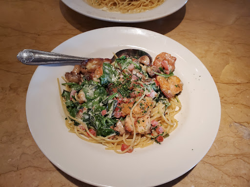 My girlfriend and I were out having a night in the town and decided to stop by and try it out although its not our usual restaurant we wanted to give it a shot. Right off the bat the lighting of the restaurant its not the greatest way too dark to my taste. Because it was just the two of us they were able to get us to our seat fairly fast our waiter Leslie was pretty ok she did offer some suggestions which I did appreciate havent been to a place where they actually suggested something in a while it was nice to know that they were still doing that. Starting bread with butter was pretty good but when the food came I was a little disappointed. I myself order the shrimp scampi and Steak Diane dinner combination. The plates price was $22.50 but the amount of food that actually came with it was extremely disappointing. For that price I would have expected more than just three shrimp in 4 slices of steak the mashed potatoes in the middle or almost double the regular amount you would have gotten normally I dont know if they were trying to compensate for the lack of shrimp and steak but something seemed very out of place. Anyway looks like the cheesecake is the only thing that might save this comment. It was nice creamy and it had a very appealing presentation so in my own opinion this place gets a 3 out of 5 stars and an overall rating of coming back very unlikely unless its just for cheesecake I dont think Im going to do the food anymore I dont think the play I had was worth 20 something dollars at least not with the amount of food that was on it.