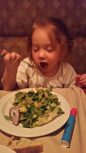 Service good, food good. Wedge salad is normally a wedge of head lettuce topped with bacon bits, tomato and blue cheese. Not here it is a wedge if lettuce with dresding. Really! Someone needs to explain to management what a wedge salad contains.