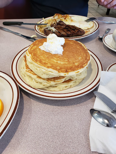 Its all in what ones tastes are and what one orders that makes good, bad or no reviews. I had read a review on how incredible the biscuits and gravy was. What biscuits. Shouldnt one assume that a biscuit is an individual thing thats bake, thus having a crust? What I got reminded me of a 2 inch slice of loaf bread with no crust and warmed in a microwave. Horrible to my way of thinking. My order came with 2 eggs which I order medium, make sure the whites at done. The eggs came with the yolks touching each other and cleat yolk running down the sides of the yolk. Doesnt anyone teach cooks to spread the yolks when frying eggs? The 3 slices of bacon was very lumpy. My companion had the Denver omelette and it was huge and delicious though the hasbrowns also was way undercooked. I did notice some delicious looking waffles and French toast go by. If I go back Ill try the waffle.