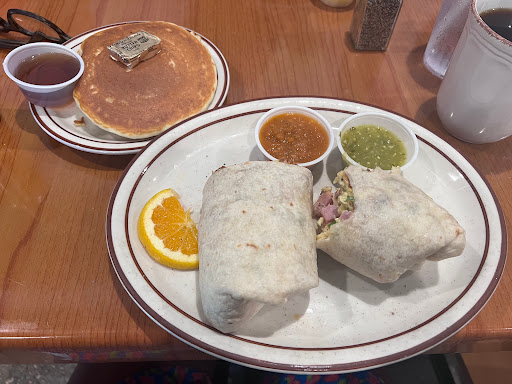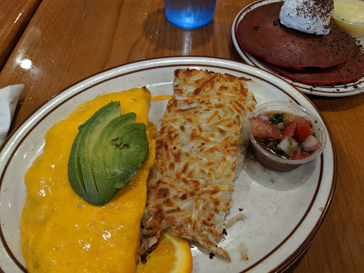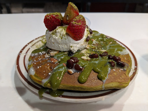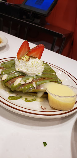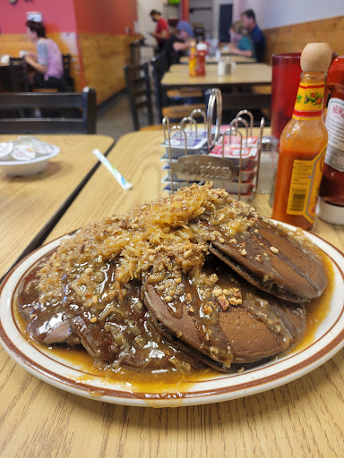 Came here with a bunch of friends (Group of 5) for breakfast. Luckily we came before the place got busy. Two of us ordered the iced tea. It was just okay. Watered down and not a lot of tea flavor. For main course I had the Cowboy Omelette with cinnabun pancakes. I also tried the carrot, red velvet, and wheat pancakes. Ranked from most to least favorite: Cinnabun, Carrot, Red Velvet, then Wheat. The cinnabun pancakes was flavorful and not overly sweet. I would highly recommend this pancake. The carrot pancake was good but couldnt taste the carrot flavor. It was very mild and it basically looked like the wheat pancake but a little sweeter. The red velvet was fairly dry and the melted sugar overpowered the red velvet. The cowboy omelette was okay. The eggs were overcooked but there were lots of ingredients in it. I would have preferred the eggs to be a little more watery and the vegetables a little less overcooked. The fried potatoes were okay. It was not overly salty and not burnt at all. Overall, I would give this place 3.5 stars. This place is good for breakfast and I would come back here again. Portion size was excellent. They do give a lot for breakfast. Unfortunately, it just missed the mark on certain things. Service was excellent. Pancakes here are excellent. Next time Ill try their french toast and another egg dish to test.