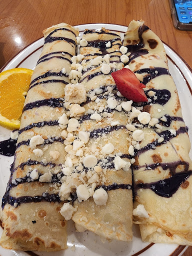 Traveling, wanted to come here after seeing photos on social media. Awesome pancakes! Many sweet options to choose from and you can even substitute options. Service was great, server was knowlegable and nice. Checked on us frequently. My only complaint is she brought out multiple icings that we didnt want after I told her I didnt want the particular one the pancake comes with anyway as I ordered! She said she brought it just in case I wanted to try it. My husband asked for cream cheese on the side for his and she brought out 2 I guess for me, plus the one my pancake comes with for him when he said as he was ordering he did not want cookie butter. While it was good $2 extra just for toppings you didnt use/want is a little much. I would come again, just know what youre paying for.
