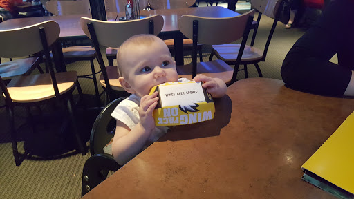 On a Tuesday, when apparently celery doesnt come *with* the wings. The wings were not bad, though. Unexpectedly good, for sure. I was most unpleased by our server, Brooke, who seemed to bypass the necessary qualities of a server. We ordered our drinks, that were brought over by another server. Then, we ordered our appetizer. We received our appetizer by yet another server about 15 minutes later. No sign of Brooke. It was 20 minutes later before Brooke came back to get our order. That was 35 minutes since she had been to our table. We then ordered. 10 minutes later, Brooke came by to see if Mr. Beer drinker sitting across from me needed more beer; however, she ignored my almost empty glass of water and my sons completely empty drink and walked away. It was 10 minutes later before she came back by to check if more beer was needed. Before she could walk away again, I got her attention and asked if my son could have a refill. We were then served our food by yet another server. And, once again, our server only came back by to see if more beer was needed. I understand how kitchen runners work and have no issues with the fact that different people came to my table. In fact, Im glad they did. Each other person who came by was extremely nice and asked if we needed anything. Even now, as I sit inside Buffalo Wild Wings typing this review. My check is paid. My food is boxed. I havent seen Brooke even walk by this side of the restaurant in over 15 minutes. Yet, three other servers have come by to see if I need anything else, although Im clearly finished-- it is much appreciated. I would like to leave my tip to them. I didnt get their names, but they were awesome.
