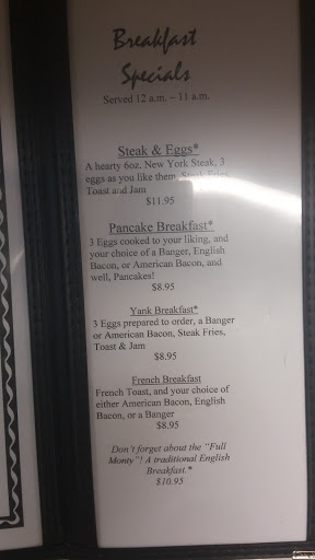 Being a British I like good British pub food, this was not. My family and I are here in Las Vegas for 4 days and when we heard of this British pub with advertised British breakfast on their menu with British bacon. Bacon was not british, but salted pork,which you can buy at any supermarket. The sausages were authentic British bangers. My wife ordered fish and chips, not Atlantic cod as advertised but pollok. She then ordered a scotch egg, bad choice, came overcooked and hard with both ends burnt, we asked for mustard and got Coleman in a jar which had been substituted with a mustard powder mix. However they didnt charge us when we pointed out the scotch egg and mustard. Girl behind the bar was very pleasant as was our hostess. In all, how do I know so much about food, well I dont, but my wife was head chef in a very well known and highly rated British pub. My only thoughts is that I wish owners of American pubs would show respect and at least learn a little of our culture and quality of good pub food
