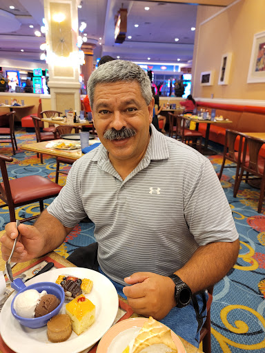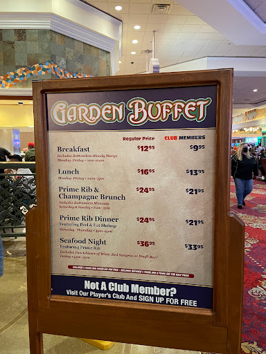 We ate breakfast twice & dinner once. The service at breakfast was lacking. Our plates piled up and we had to flag down the server to get refills. When one person wanted a refill, instead of asking others she just got the one refill. Dinner service was the total opposite. Our waitress was very attentive and we never had to ask for anything. Food was very good on all occasions. The made to order omelets were great. One complaint would be that day dinner I tried the made to order Italian. They gave me so much pasta that I could have fed our entire party of 9. I just felt like it as a lot of wasted good because there was no way I could have eaten it all. I didnt try and other dinner items because I ate as much of the pasta as I could. I would recommend getting a players club card because you get a discounted price at the buffet.