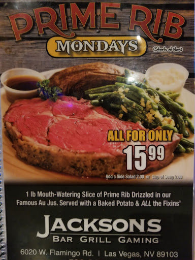 Food made with passion. The burgers are ground fresh from beef ribeye. They do an outstanding job and they do have a prime rib special. Soon they will also have food delivery through Chow Now so you will be able to download the Jacksons app and order and pay with simplicity right from your mobile device or through the web as well on there Facebook page. A must try!! Get the grilled cheese burger!!! Heaven!!!