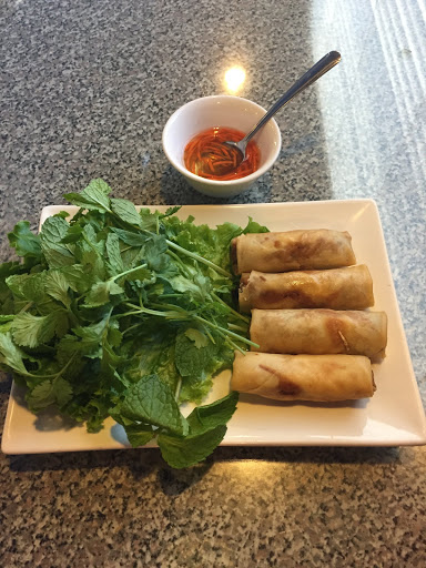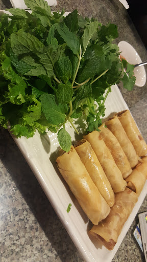 My wife and I ordered 2 small phos, egg rolls, and a banh mi. There was 3 other patrons, and our food took forever to get to us, 20 minute plus to get to us. Egg rolls tasted like they were kept in freezer for a few days before frying. The only way we were able to eat it was because it came with mint and cilantro. Do NOT order the Binh Mi...stay clear of it. Bread is from premade sandwich bun you can buy at the grocery store. Also it was super tiny, only 6 inches. It was one of the worst Binh mi i ever ate, so gross. Worst yet the pho was so bland. It tasted like i was eating noodles and hot water. Even drowning my pho in hoison and sriracha didnt help. I wouldnt recommend this place, stay clear of it....eeeeeeks.