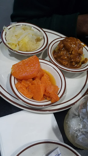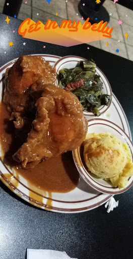 If I could give them a zero I would! This place was so NASTY! My Daughter & I ate there for Easter Sunday. I ordered a full rack of ribs with mac & cheese, red beans & rice and greens. Ive had better greens out of a can. The red beans and rice, were dry as if you were eating toilet paper. The mac n cheese, was extremely dry. The full rack of ribs, consisted of 2 slices of meat, no kind of ribs Ive ever seen before. One was nothing but fat. The second one was dry maybe took 3 fork fulls of meat off that one. The barbeque sauce, was poured all over this meat. Basically this nasty meat was cooked, after it was done, then they poured a ton of barbeque sauce on top of the questionable meat.. I wouldnt eat here, even if it were free & that says a lot. The food wasnt hot, not even luke warm. The only two things that were good was the diet coke, then leaving that place. Ive been eating soul food my entire life. This wasnt soul food. We would of been better eating at McDonalds or Taco Bell. This place is beyond disgusting!!! IDK how they stay open, just straight nasty as hell! Id rather eat Alpo Dog Food. Thats how nasty this place was. That meat I ordered, was not ribs & Im not sure what type of nasty meat that was, but it was crap!!! Btw I ended up in the restroom for a good 40mins once I got home. I was having extreme cramping and sick to my stomach. Excesive amounts of diarrhea. If you value your stomach and health along with your food palette please eat elsewhere....