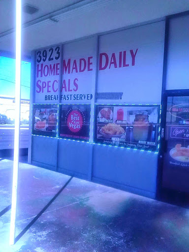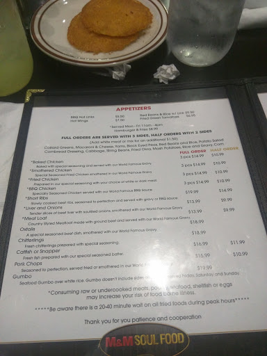 First i have to say if you been eating at another soul food place make the switch to M&M.The music you hear as soon as you walk in the soul food cafe is relaxing suited to the soul.The staff and i mean the whole staff is very professional, friendly ,pleasant, nice, well dress.The place was very clean.Now to the food lets say this i stay in Las Vegas for five days,the second day of my stay i did a search for soul food and found this soul food cafe never ate somewhere else even down to breakfast i had my three courses of meal here along with my sister,my bestfriend.The menu took me back to my family Liver, Ham steak,Salmon Croquet Kool Aid etc.The flavor was off the hook i wish they had a franchise in new york.Have you ever been so happy satisfied with how your food was prepare that if you had the money you wanted you wouldve left the biggest tip everyone especially the cooks,the founder.I really enjoyed eating here i give this place over 4 stars your are Number.Well its March the 17 2009 at 3:05 am and just finish my chicken wings i took back with me for the plane ride.Keep Up The Excellent Cooking I will be back