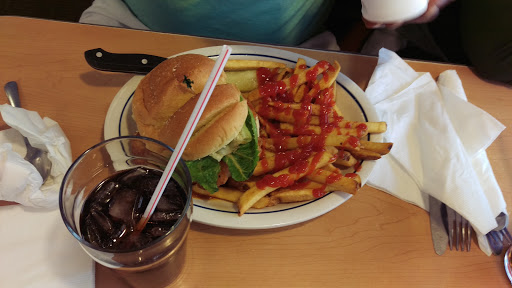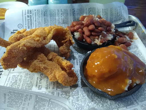 Food was ok...nothing spectacular. Prices were ok...$8-20. The "corn bread" pancakes were thin, cold and very greasy. When the food was brought out to our table of 4 it seemed like the cook was preparing each meal one at a time since that was how it was presented. My food was palatable however it was already cooling off and had obviously been sitting. Half my meal was brought out and the other half arrived 5 minutes later. This happened with the other couple.. I was almost done eating by the time their food arrived. Drink refills were very slow. I was basically finished eating when the server asked me if I wanted a refill. This place is rated 3 stars and if they hire more staff or new staff this place has alot of potential. When we were leaving I could see into the kitchen area and it was smallish and outdated. I observed 1 cook doing all the work and this is why the quality of food and service is not 100%.