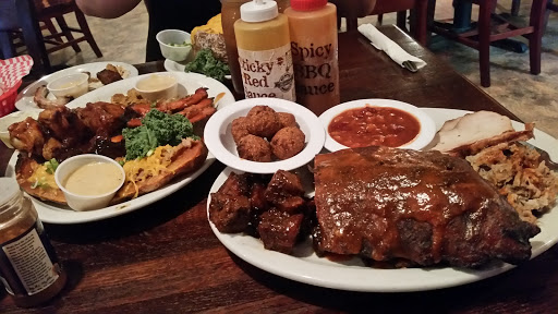 Although they stopped serving ham years ago due to price increase, this place is still a favorite. Lately weve been going to (abusing?) half-price appetizers (weekdays, 4-6, does not include any app with ribs). Dont cheap out on your tip--tip on the pre-discount total, and add some...or lots. I wont get burnt ends anywhere else! Also good: pork rinds, fried pickles and onions, devilled eggs, chicken fingers, nachos (eat fast or theyll get soggy), potato skins. Half price food haS NEVER been short on quantity or quality. Eating not on the cheap? Chili is pretty outstanding. If you get the Grand Champion platter, sub hot links for the chicken (unless you like slow smoked chicken--I find it a bit off-putting).