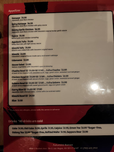 Fukumimi shows Vegas what Ramen is all about. The Gyoza is must have, fresh and tasty. The sauce is great and really accompanies the Gyoza. The environment is simple and somewhat tight which is normal for Ramen Shops. The Ramen: I have had each bowl and thus far my favorites are the Tonkutsu Miso and Fukumimi. They are wonderful, the broth is rich and has a great taste, the Miso is thick and has a real warm feeling to it, plus the Chashu is wonderful, it falls apart in your mouth and really has a strong flavor which adds to the Pork flavor. The noodles are great, good texture and taste and a good amount. Plus adding in the Corn, Egg, Green Onions really make the the tastes fresh and well done. I have been going here for almost 3 months now, I do go to other places and try new bowls and really Fukumimi is the best thus far. The food, the service, and overall quant environment is why I keep coming back.