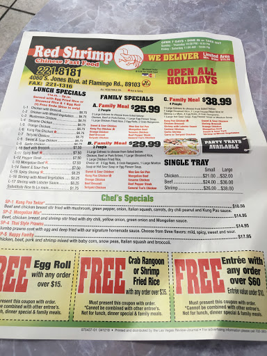 Been eating at Red Shrimp for years. Love the Pork Fried Rice, Orange Chicken and Shrimp with Lobster Sauce. Wish their Egg Rolls were larger but this place is really my #1 place to go