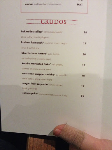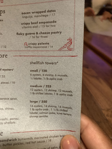 Food was great & really enjoyed the unique cocktails. Server had great food suggestions. Seating wasnt the greatest -- definitely not romantic. Start with 2-3 dishes per person. Our favorites were the hokkaido scallop, blue fin tuna tartare & bacon wrapped dates.