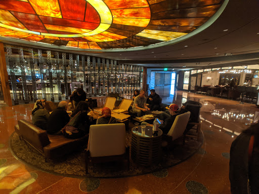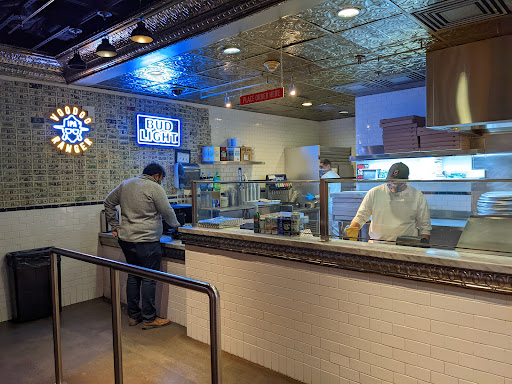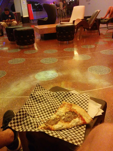 Just landed in Vegas and dead tired but you dont come to Vegas to sleep - you come to party...or eat. After the mess it took to check into our hotel, find our reservation, get to our room, etc., all we wanted to do was sleep but we were hungry and only had a limited time in Vegas to explore so we hit up this place. Secret Pizza is located on the 3rd floor of Cosmo across from the night club. Just look for all the drunk people stumbling toward this place and a narrow hallway with vintage records on the wall. Inside, this place is super tiny but the staff keeps you entertained with grand shows of spinning pizza dough etc. We were tired but fully awake after their friendly banter. Pizza isnt cheap but then again Vegas isnt exactly cheap so be prepared to pay $5 a slice. We each got the supreme with a variety of meats. Drinks are also expensive so we opted for water. Overall, theres a great selection of pizzas (and seasonings!) and you can see them being made fresh. Its open late for all your cravings.