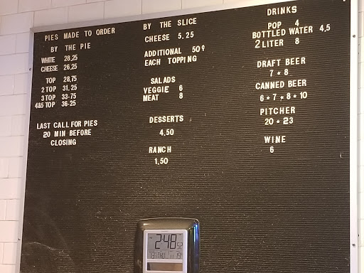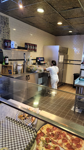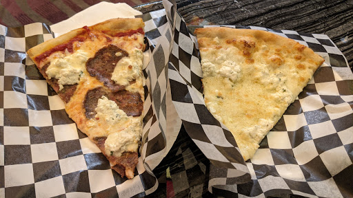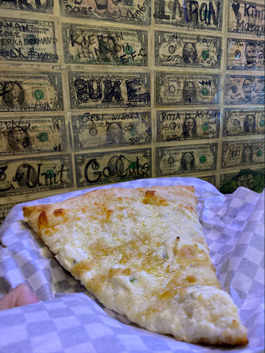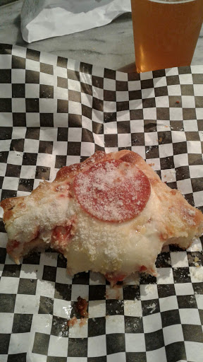 Im not a pizza connoisseur, preferring dominos, papa johns, or even digiorno to this place so take note of that as I write. The pizza here was actually disappointing for me and my date together. She commented on it before I did. Ive been here twice and both times I felt as though the pizza was too hard and lacked a familiar flavor. Most people who are there are drinking heavily and that could attribute to the raving reviews on their pizza flavor too. Otherwise, the service is extremely poor because it can be. The line isnt devastatingly slow, but its not fast and theres always a line. There is almost no seating, so it can get really cozy. Since it is unmarked and tucked away with rude service and a simple menu, it is extremely trendy and worth at least a gander. If you can show the place to someone for the first time you will definitely score some cool points, but I cant recommend overall since it was just not good enough if youre really wanting quality food and quality time.