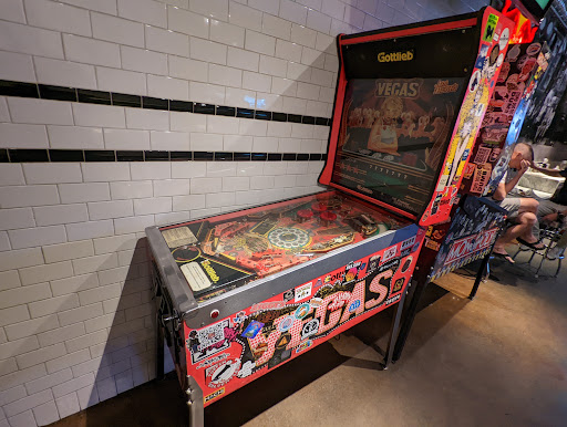 Best pizza outside of NYC. Cheap compared to other things you could possibly eat here on The Strip. Buy it by the slice or the whole pie. Love the crispy, thin chewy crust, light on the toppings compared to California pizza that is piled high. Hidden with no signage on the third floor, right before the Japanese restaurant. Walk the long corridor filled with classic 50s and 60s album covers of the classic crooners that made Vegas hip back in the day - Dean Martin, Vic Damone, Bobby Darin - and enter into a small, white subway tile filled room with little seating and several pinball machines. I can only image how crazy this place gets in the wee hours with all the clubers wanting a slice.