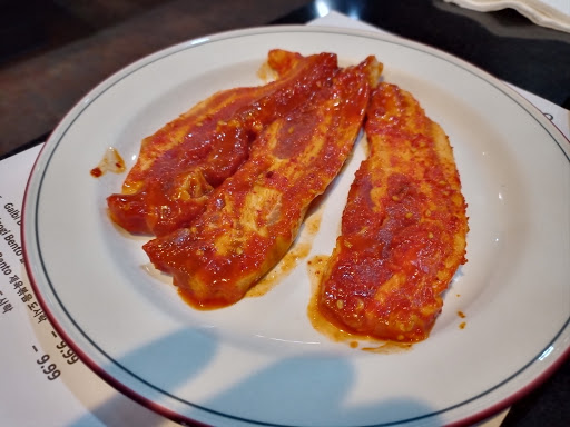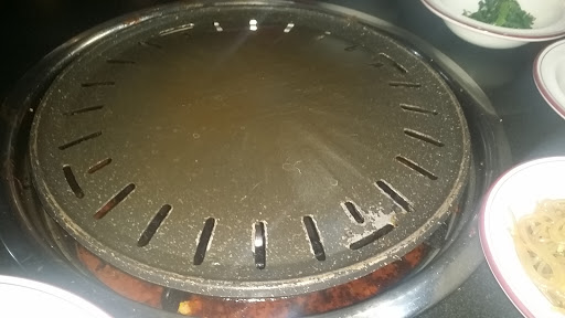 -1 for food is for the plate placed on top of the stove for cooking. It wasnt the traditional grill type. Some places that Ive been to in the past, have actual charcoal underneath the grill that enhances the flavor of the meat. However, at the cost of $25 per person and "all you can eat," its well worth it. Im not sure if they have Yukke (Korean style steak tartare), but for that, I have another place I go to, where I know that they know how to handle it, trim it, and make it properly. From time to time, I do my own Korean style or Japanese Style BBQ at home. I have an electric grill for this. But!! Itll cost well over $25 even to buy 2 types of beef (kalubi and bulukogi), and buying or making the sauce myself. Cleaning up the mess afterwards is another thing.... Time is money. LoL Suras marinate was very well done, and I think its in par with other Korean BBQ places around there. The radish soup had a little too much black pepper, but, it was good. There are many varieties to choose from, whether its beef, pork, chicken, squid, veggies. The Korean waitress does speak English, as well as Korean, and I was very impressed when she spoke Japanese to me, with almost no accent! I have a couple of friends coming in from Japan in August, and Im taking them to Sura, and Im sure theyll like it. Theyre more knowledgeable about Korean BBQ than I, so, I think Itll be a great experience for both of us.