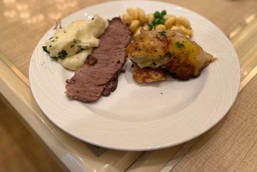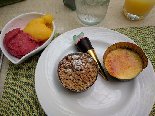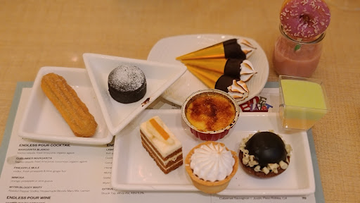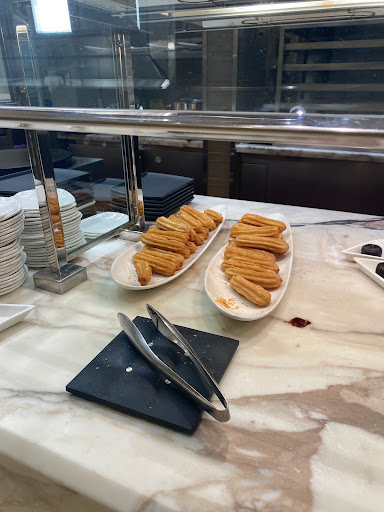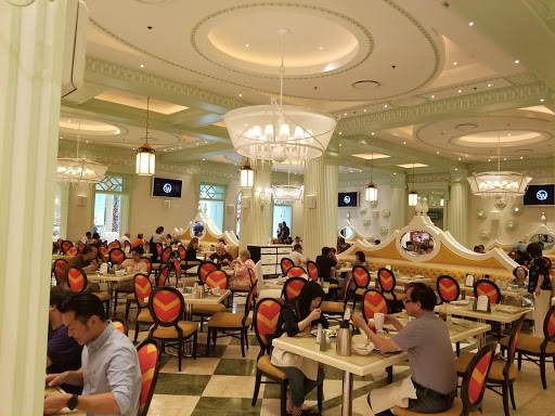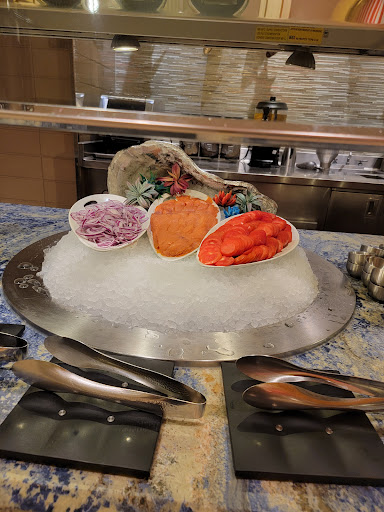 vegas的自助里最推荐这家!作为最顶级的buffet,在casear要排半小时以上,但这里不用排队!而且casear现在很无耻,午餐和晚餐不能连着吃了,午餐吃到3点清人,但这里仍可以连着(所以如我就是下午2点半来的)。 来之前看评论,食物说好的不好的都有。——我要替这里正名一下,作为超五星酒店,食物的品质和口味必然都很赞!不管鱼生、肉食、甜品,绝对都是你能想到的最好!——说不好的一定是花大价钱来吃晚餐的。蟹腿、生蚝这种并不新鲜的海产确实一般(las vegas是内陆啊,另一家casear的buffet海鲜也一样不行)。午餐出了蟹腿、生蚝、生虾,其他完全和晚餐完全一样。 在这种五星酒店优美的环境下吃点烟熏三文鱼、牛排,再来一波甜点,就已经完全值回票价了,何况鲜榨果汁还是免费无限量供应的!这个实在太赞了! 哦,BTW,上一条中文评价说,说甜品好吃的站出来,我站出来!这里的甜品种类繁多,而且都巨好吃!金钱豹好久没吃了,忘了,起码不比四季和香格里拉的甜品差,只有冰淇淋稍逊一筹。
